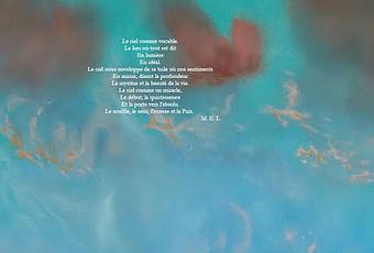Le ciel comme vocable. Le lieu où tout est dit En lumière En idéal. Le ciel nous enveloppe de sa toile où nos sentiments En miroir, disent la profondeur Le mystère et la beauté de la vie. Le ciel comme un miracle, Le début, la quintessence Et la porte vers l'absolu. Le souffle, le sens, l'ivresse et la Paix. Marie-Elise Larène