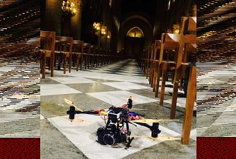 Adaptation du Sony A7s sur le drone Mini6 pour un tournage en faible luminosité, entre 6h30 et 7h30 du matin, dans Notre Dame de Paris (sujet TV « Grand Format M6 »). Optique 16mm (APSC) en Full HD 50p, 1/100s F5.6, 16000 ISO… pour un résultat impressionnant !!