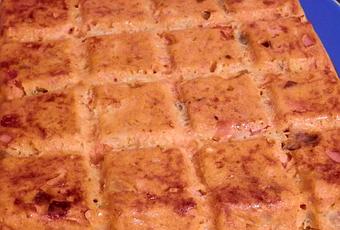 moule carré de 20 cm de côté légèrement huilé/beurré ou dans le moule tablette Demarle comme moi.Faire cuire environ 35 minutes. Laisser légèrement tiédir puis d émouler sur le plat de service.