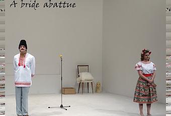 Ils sont sur scène quand le public s’installe, au garde-à-vous devant un micro sur pied des années 30, romantiques dans un costume folklorique suggérant une conférence de Connaissance du monde comme j’allais en écouter dans mon enfance.Elle (Agnès Pontier) dit qu’il est né à la campagne. Que c’est un vrai roumain. L’un parle pour l’autre et réciproquement. N’hésitant pas à se corriger pour rétablir la vérité après chaque tentative pour l’édulcorer. On apprend qu’elle n’aime pas l’école, qu’il (Olivier Dutilloy) est bègue. Pas un pour racheter l’autre. Les propos sont débités sans aucune pudeur et le spectateur en a le tournis.