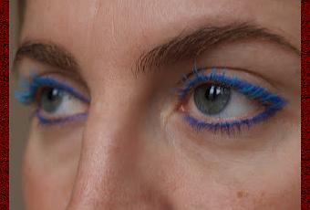 Je remarque son maquillage bleu sur les yeux. Ca lui va bien.