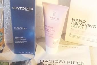 J'ai donc ressorti mon attirail " sauvons les mains du soldat Julie " , à savoir des crèmes de jour, de nuit, et même des masques ! Oui Bernadette, on ne rigole plus !