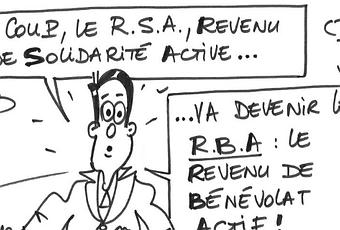 Rédacteurs et stagiaires: cliquez sur cette barre pour vous connecter en back-office de la rédaction! La réponse de notre dessinateur est: "Du coup, le RSA (revenu de solidarité active) va devenir le RBA (revenu de bénévolat actif!)" (c) Jean-Jacques Beltramo (c) Jean-Jacques Beltramo (c) Jean-Jacques Beltramo