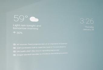 Ce miroir de salle de bains high-tech permet d’afficher diverses notifications et informations comme l’heure, la météo ou des actualités. Les informations se mettent à jour automatiquement et l’application dispose d’un système de commande vocale. Max Braun serait en train de tester un modèle permettant d’annoncer le trafic en temps réel.