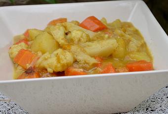 Aujourd'hui je vous emmène encore en Inde avec un plat mijoté, bien réconfortant pour l'hver, et vegan: un curry de légumes.