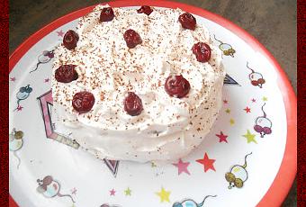 10 cl de Kirsch4 œufs80 gr de sucre + 20 gr pour le sirop40 gr de sucre glace pour la chantilly30 gr de Maïzena50 cl de crème fraîche entière4 c à s de sucre glace50 gr de chocolat en poudreQuelques carreaux de chocolat noir pour les copeaux Pour la génoise : Battre 2 œufs avec la moitié du sucre (soit 40 gr) puis ajouter 2 jaunes. Monter en neige les 2 blancs avec le reste de sucre. Puis mélanger délicatement les deux préparations à l'aide d'une maryse. Il ne vous reste qu'à ajouter en pluie la Maïzena et le cacao en poudre.Verser la préparation obtenue dans un moule préalablement beurré et faire cuire th.6-7 pendant 30 minutes (adaptez la cuisson à votre four).Lorsque votre génoise est cuite, la laisser refroidir sur une grille puis la couper en deux afin d'obtenir deux cercles.Pour les cerises :Faire bouillir 25 cl d'eau avec le sucre et les 10 cl de Kirsch puis hors du feu incorporer les cerises. Bien laisser refroidir vos cerises avant de les utiliser.La chantilly :Mettre vos fouets et votre saladier au congélateur quelques minutes avant de monter votre crème en chantilly. Ajouter le sucre au fur et à mesure ainsi que quelques gouttes de Kirsch pour parfumer votre crème.Le montage : Déposer le premier cercle de génoise dans un plat de service et l'imbiber du sirop des cerises. Recouvrir ensuite d'un peu de crème chantilly avant de disposer généreusement les cerises confites. Recouvrir du second cercle de génoise imbibé de sirop de Kirsch puis recouvrir l'ensemble de crème chantilly. Il ne vous reste plus qu'à décorer le dessus de votre gâteau de cerises confites et de copeaux de chocolat.
