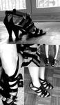 Trouvées ! Vous vous souvenez, j'avais comme un désir de spartiates à talons ? Hé ouais la fille têtue que je suis n'a eu de cesse de chercher ce foutu modèle, et me voici, comme dirait Devendra "soft statue in stilettos", chaussée pour l'été.