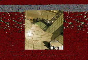 L’artiste a également dessiné le long de l’escalator central un dragon qui ondule et serpente sur la rampe. En noir et blanc, rappelant les encres chinoises. C’est « Le dragon escaladant ».