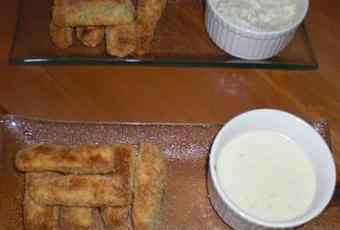 - Puis fouettez les oeufs à la fourchette et trempez-y les frites de courgettes.