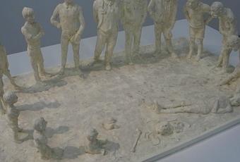 Joanna Malinowska expose ici Le Cercle de la Vie. D’abord, je m’y arrête. Je me demande, sur ce cercle, quelle est ma position. Séduit par le cycle que montre cette oeuvre, il me faudra quelques jours pour en contester la portée. La vie n’est pas un cycle qui s’ouvre avec la naissance et se clôt avec la mort. « Tu étais poussière et tu redeviendras poussière » ? La vie n’est pas un cercle fermé. D’une génération à une autre, bien des changements se produisent. Des combats, des joies, des peines, des résistances, des espoirs. Demain ne recommence pas hier. Le titre général de cette exposition est Le sens de la peine. Dans l’oeuvre de Joanna Malinowska, cela se traduit par « le sens de la vie ». Mais la vie n’a pas de sens. Ou plutôt la vie n’est pas écrite d’avance. L’oeuvre est ici présentée entre deux formes de prisons : la façade de la Maison d’Arrêt de Nanterre, de Nicolas Daubanes, et les photographies de James Casabere. Mais non, la vie n’est pas une prison, c’est un passage, et l'individu est un parmi d'autres, c'est ce qui fait que la vie continue.