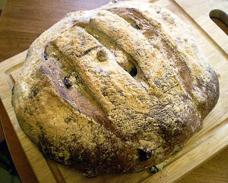 Prélever la moitié de la pâte, fariner la surface de travail et abaisser grossièrement la pâte avec les mains pour former une plaque d’environ 2-3 cm (1/2 pouce) - ou le faire au rouleau à pâte. Étendre les olives dessus et rouler la pâte sur elle-même, puis former vaguement une boule (on peut aussi tout simplement intégrer les olives au mélange de pâte.) Laisser reposer sur un papier alu au moins une heure, ou toute la nuit.