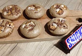 - Verser dans les moules. Sur les gâteaux poser les morceaux de snickers restants