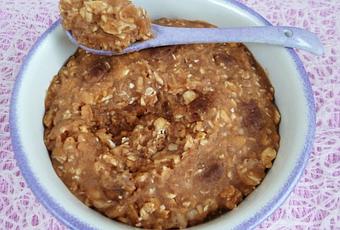 La compote apporte de la rondeur et de la douceur ainsi que des fibres supplémentaires... ce dessert est très satiétant, grâce à sa richesse... d'une part, en protéines... et d'autre part, en fibres... l'effet coupe-faim du son d'avoine est extraordinaire.