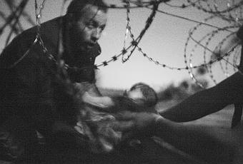 Intitulée "Espoir d'une nouvelle vie", l'image en noir et blanc a été prise par le photographe indépendant dans la nuit du 28 août 2015, alors que des réfugiés essaient de passer en Hongrie. Un bébé est passé de main en main, sous les barbelés de la frontière entre Horgos (Serbie) et Roszke (Hongrie). Sameer Al-Doumy, Roberto Schmidt et Bulent Kilic photographes de l'AFP ont également remporté les premiers, deuxième et troisième prix dans la catégorie "Reportages d'actualités chaudes", pour des photos prises en Syrie, au Népal et en Turquie. Abd Doumany, lui, a remporté le deuxième prix de la catégorie "Reportages d'actualités générales" dans la ville de Douma, en Syrie."Puissante"La photo de Warren Richardson est « puissante, à cause de sa simplicité », a assuré le président du jury et directeur photo de l'AFP, Francis Kohn : "nous avons vu cette photo tôt (dans le processus de sélection) et nous savions que c'était une image importante". Pour Huang Wen, membre du jury et directeur du développement des nouveaux médias à l'agence chinoise Chine nouvelle, cette photo est "troublante" : "vous voyez l'anxiété et la tension d'une manière subtile, l'image montre l'émotion et les sentiments d'un père qui essaie de faire passer son fils dans un monde auquel il veut appartenir". Cette nuit-là, après cinq jours passés à camper avec les réfugiés, Warren Richardson voit arriver un groupe d'environ 200 personnes se déplaçant sous le couvert des arbres, le long de la ligne de barbelés.