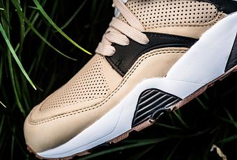 Monkey Time X Puma Blaze of Glory dévoilent la suite de leur collaboration, après un superbe travail réalisé sur la Asics Gel Lyte V, les voici à présent qui s’attardent sur une autre silhouette phare de la marque, la BoG. L’upper est constitué de cuir noir sur la partie arrière et beige pour le reste, tantôt perforé tantôt lisse, seul une pièce en cuir blanc vient se fondre dans cette combinaison. La midsole est majoritairement blanche avec juste quelques parties noires et l’outsole est en gomme. Les lacets sont beige également avec une finition en métal doré. Un rendu vraiment réussi pour cette paire proposée en éxemplaires limitées.