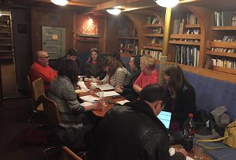 Tout d'abord, il est plutôt rare que la délibération pour un concours d'écriture se fasse sur un bateau (ah oui ?) mais quel que soit le lieu, on retrouve toujours un élément essentiel aux vifs débats qui vont avoir lieu : une grande table autour de laquelle se réunissent les jurés pour échanger leurs points de vue sur les textes lus et choisir le ou les heureux élu(s).