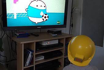 Piwi+ est une chaîne formidable... bébé2 adore. Regarder Mulung avec un casque de chantier jaune