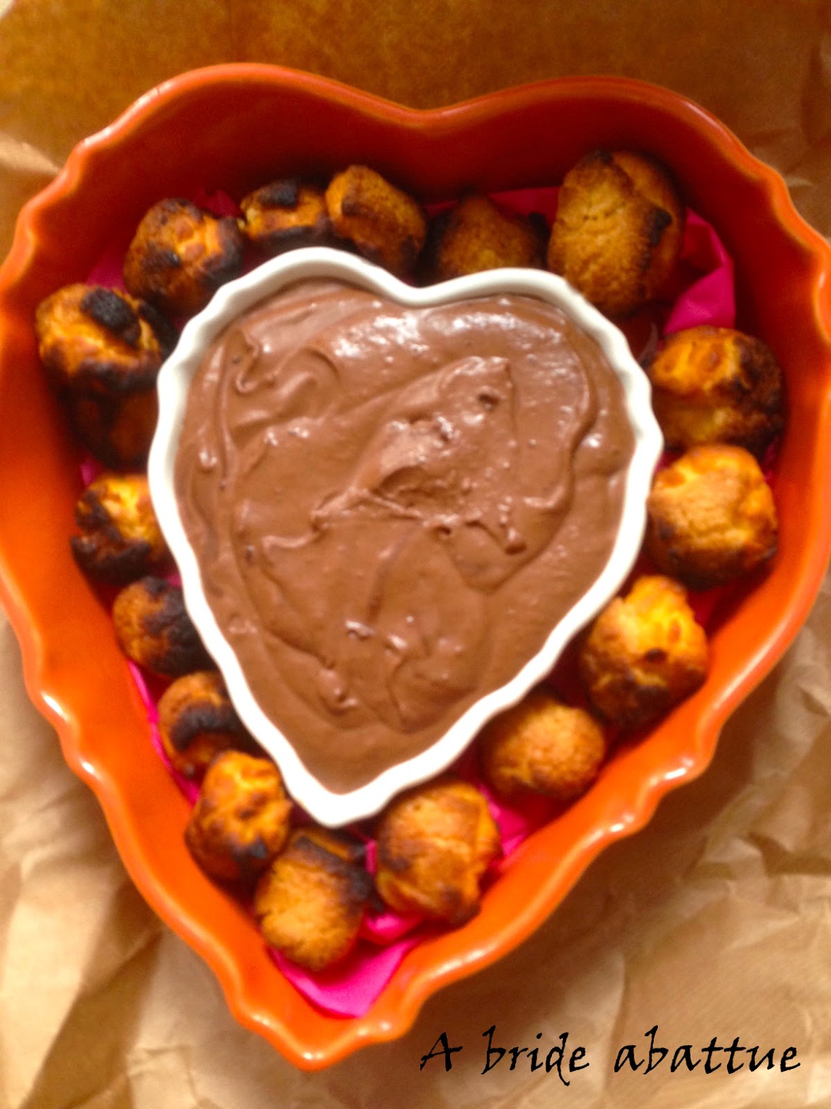 Dernière étape, dégustation avec la nougatine maison ou une framboise ... Pascale recommande de laisser libre cours à notre imagination. J'ai choisi de servir avec des petits choux, façon profiterole. A chacun de remplir ses choux.