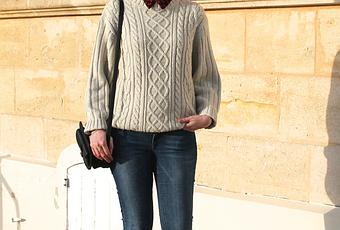 Babies vernies rouges - Texto Chaussettes - Calzedonia Pull torsadé vintage Chemise à coeurs - Mango (old)Jean - Zara Manteau - Comptoir des Cotonniers (old)