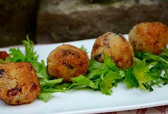Alors quand je suis tombé sur une recette de boulettes de Floraline, qui s'apparente un peu aux arrancini siciliens, sur le site Démotivateur Food, je me suis empressée de tester en faisant quelques modif' ! Et c'était pas mal du tout avec une salade !