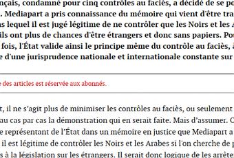 Après la condamnation de l’état français pour discriminations suite à de multiples plaintes pour contrôles au faciès, j’avais espéré très naïvement que le représentant de celui-ci se ferait tout petit. Ma déception fut grande quand j’ai appris qu’il se pourvoyait en cassation. Mais là encore, je lui accordais le bénéfice du doute dans mon indulgence qui se révèle à présent plus coupable, sachant ceci :