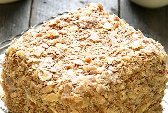 Comme le Medovik , une fois la pâte cuite , les miettes sont utilisées pour faire une chapelure qui viendra décorer le gâteau .