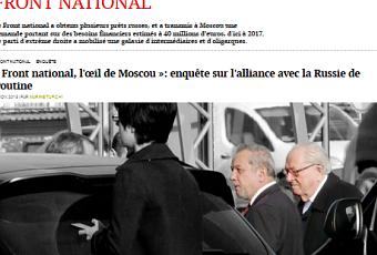 Il apparait à première vue plus que paradoxal qu’un parti d’extrême droite s’acoquine avec l’ancien empire soviétique d’obédience communiste. Un clin d’œil de l’histoire qui ne manque pas d’humour… A plusieurs reprises, le FN a en effet sollicité de la Russie des emprunts conséquents, le premier en avril 2015 de 9 millions d’euros, et la suite devant s’acheminer vers une somme colossale estimée à 40 millions d’euros, d’ici à 2017. Pourquoi donc croyez vous ? Une somme prêtée sans intérêts ? Ils ne sont probablement pas exclusivement financiers, mais également géo-politiques. Le fait pour Poutine et les oligarques russes qui lui sont favorables parce qu’ils y gagnent beaucoup d’argent ¹ de s’aliéner un parti qui pourrait accéder aux premières marches du pouvoir, en France, nation symbolique s’il en est, est un enjeu qui n’est pas sans présenter quelques opportunités d’inversion de l’attitude européenne à l’égard de la Russie. Mais il y a également, bien sûr, une convergence idéologique. Le régime de Poutine est d’essence nationaliste, d’extrême droite, et se marie fort bien avec les thèses du FN. Aussi, étendre l’influence russe au cœur même de l’Europe est fort utile. Résultat, la déclaration suivante de Marine Le Pen :