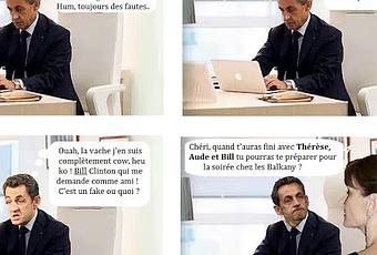 Quand Nicolas va sur Facebook Il fait le tri dans tout le souk Des faux amis, des renégats Mesure à fond tous les dégâts De ses Ni-Ni, de ses postures De ses grimaces, de son allure Et y'a le quoi le dégoûter De savoir user du clavier De la souris et de l'écran Car il en aura mis du temps !