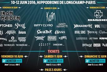 IRON MAIDEN, DEFTONES, RAMMSTEIN, KORN, MEGADETH, SKINDRED, GOJIRA, MASS HYSTERIA (pour ne citer qu’eux)…se partageront la scène sur 3 jours. Bon je vais la faire courte, ça va envoyer du lourd! Je vous prescrit des échauffements de nuque 3 fois par jours jusqu’au début du festival ! ça serait quand même con de vous bloquer dès le premier jour!