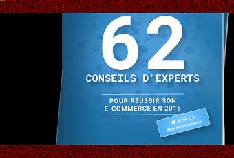 Ce guide rassemble les conseils de 62 experts en eCommerce, marketing… afin d’aider les eCommerçants débutants ou confirmés à réussir l’année 2016.