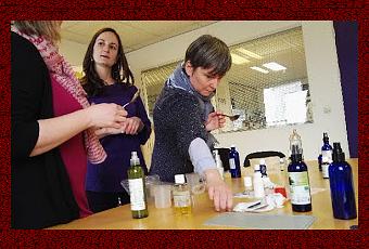 - 3 cuillères à café d'hydrolat : hamamelis (purifiant). Nous avons travaillé avec eau florale de rose, j'avais amené du cassis pour l'odeur.