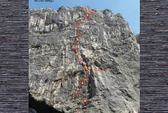 350m, 11 longueurs, 7a+ obligatoire, 8a max, encordement à 60 mètres.