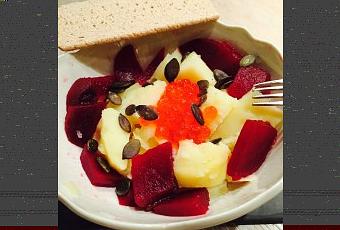 Une recette vide frigo quand on n’a pas envie de ressortir faire des courses… Des pommes de terre, des betteraves, des oeufs de saumon et quelques graines de courge voilà de quoi se faire vraiment très plaisir avec un filet de jus de citron et de l’huile de sésame, noix ou olive tout simplement. Une bonne idée saine, simple et rapide à préparer de yaquoidansmonfrigo YQDMF.