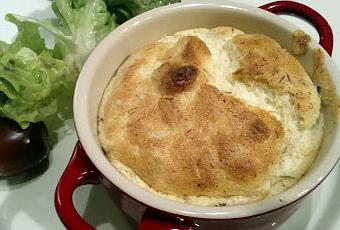 En plus du livre sur les minis cocottes, j'avais également emprunté à ma collègue celui sur les soufflés. J'y ai trouvé des recettes très originales comme celle-ci. C'est vraiment une recette du placard et rapide à faire : des œufs, une boite de maquereaux au vin blanc, un peu de farine, de lait et de beurre et le tour est joué ;-)