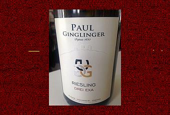 Riesling, Ginglinger Drei Exa 2014 : Un nez gracieux, fin, expressif, agrume typé citron vert, note florale marquée, classe, acacia, fleur d'oranger, fond de roche, silex, pointe terpénique. La bouche est droite, puissante, belle matière dense, c'est tendue, vif, droit, de la profondeur, encore jeune, fruit blanc, citron vert, note florale, acacia, puis plus cire d'abeille, fond de roche silex. La finale est tendue à l'empreinte presque tanique, mais fine et précise, belle persistance d'agrume, citron vert, noisette, note florale acacia, puis terpénique, fond de roche un peu plus calcaire. TB-Excellent 89-91 (15,5+)