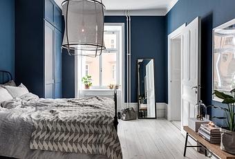 J'aimerais bien peindre toute ma chambre dans une couleur sombre, mais cela ne risque pas d'arriver avant d'avoir une pièce avec un peu plus de lumière naturelle... Pour l'instant, je me contente de ma tête de lit noire (que j'avais montré ici) et je continue à alimenter mon dossier d'inspiration pour l'avenir avec des chambres comme celle ci-dessous. Je trouve cette teinte de bleu turquin si calme et apaisante.