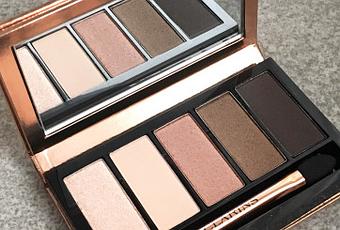 Commençons par le packaging. Cette palette se présente sous la même forme que ses grandes soeurs : un joli petit écrin assez fin, qui est très pratique à ranger et à transporter partout avec soi. Seule la couleur change : après le doré et le marron, place à un joli bronze rosé. Côté fards, on retrouve des couleurs chaudes, allant du beige au bronze irisé, en passant par le marron glacé et le brun satiné. Bref, un joli dégradé de 5 teintes complémentaires, qui devraient convenir à la grande majorité d’entre nous ! Personnellement, je trouve tous les fards très beaux, mais j’ai une préférence pour les 3 derniers, qui sont irisés et que j’utilise au quotidien (aussi bien la journée que le soir). Enfin, côté texture, les fards sont crémeux et très faciles à travailler. On peut les utiliser seuls, ou on peut les mixer entre eux… En bref, il y a plein de combinaisons à créer avec cette jolie palette !