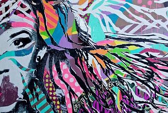 Graffiti Pop : le " sampling " des imagesPour expliquer la réalisation d'une œuvre, Jo Di Bona revient encore à la musique et compare son travail à celui d'un rappeur. Il dit qu'il fait du " sampling " : il collecte puis mélange plusieurs images (comme le rappeur assemble des rythmiques) pour en créer une nouvelle.