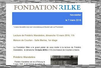 Fondation Rainer Maria RILKE à Sierre (Valais) lecture Frédéric WANDELERE le Dimanche 13 Mars 2016