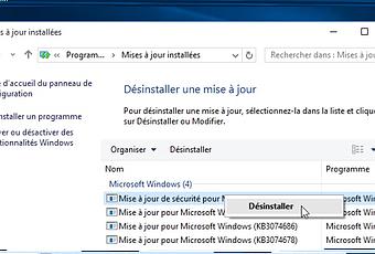 Désinstaller une mise à jour Windows (version 7 à 10)Ouvrez d'abord le Panneau de configuration depuis le menu Démarrer de Windows. Ensuite, cliquez sur " Programmes ", puis sur " Programmes et fonctionnalités ". Selon le type d'affichage de votre panneau de configuration (par catégories ou par icônes), il se peut que vous ayez seulement à cliquer directement sur ce dernier lien. Enfin, cliquez sur le lien " Afficher les mises à jour installées " dans la partie de gauche.