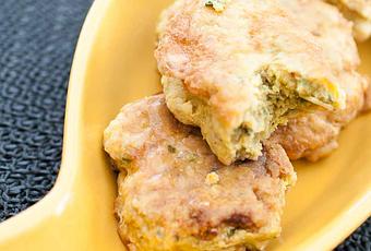 - Faites des boulettes de la taille d'un oeuf, roulez les dans la farine puis dans l'es oeufs battus.
