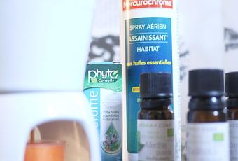 Le spray aérien assainissant de Mercurochrome, aux huiles essentielles d'eucalyptus globolus, lavande, romarin, menthe poivrée, citron, pin sylvestre et d'Ylang-Ylang.Ce spray serait bactéricide, fongicide, et virucide. (permettrait d'éliminer en grande partie les bactéries, champignons ou virus présents dans la maison).On voit de plus en plus ce type de produit dans le commerce. En para-pharmacie ou en grande surface. Ca faisait quelque temps que j'avais envie d'essayer (et voir ce que ça donne).