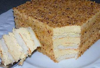 Le Russe est un délicieux dessert, composé d'un biscuit fin et moelleux aux amandes (et aux noisettes) et d'une crème au beurre parfumée au praliné.