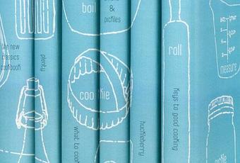 Alors aujourd'hui, j'ai pensé à vous qui aimez être aux fourneaux et vous inspirer de recettes trouvées dans des livres. Une fois de plus, le site Juniper Books a été une excellente source et je vous ai déniché un set spécial livres de cuisine contemporains. Toujours le même principe, des couvertures amovibles à rabat, qui une fois alignées dans le bon ordre, forment une illustration. Ici j'ai aimé le bleu des couvertures, les dessins réalisés dans un simple trait blanc et le rendu final des sept livres côte à côte.