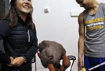 Décidément, Stephen Curry est un magicien dès qu’il s’agit de pratiquer un sport de balle! En effet, si vous ne le saviez pas, Steph est un golfeur très très doué. Ainsi, il s’est prêté hier à un petit challenge face à Lydia Ko, golfeuse professionnelle Sud-Coréenne et 6ème mondiale. Le but: Rentrer un putt de près de 30m.Et s’il a échoué de peu, environ 2 cm, le talent de Curry, club à la main, saute aux yeux. En 2008, on apprenait d’un journaliste de Sports Illustrated que le meneur des Golden State Warriors était « handicap 5 ».
