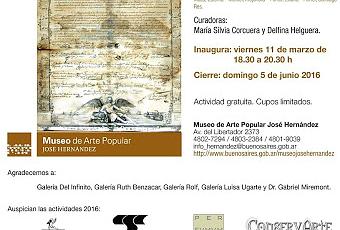 Demain, vendredi 11 mars 2016, le Museo de Arte Popular José Hernández proposera une exposition autour de la déclaration d'indépendance du 9 juillet 1816 : il a réuni seize artistes pour rendre hommage à cet acte fondateur de l'Argentine.