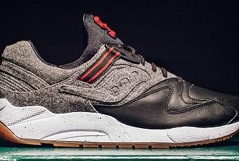 Saucony revisite la Grid 9000 en puisant son inspiration auprès de la veste la plus populaire dans les universités américaines plus connue sous le nom de “Teddy”. Une des particularité majeure de cette veste est de possèder un corps en laine et des manches en cuir et c’est éxactement ce que l’on retrouve pour la composition de l’empeigne. Laine grise pour la moitié arrière et cuir noir pour la partie avant. Quelques détails rouges viennent pimenter le tout comme le S présent sur la languette, le 1898 brodé sur le heel panel ou encore les sangles latérales et les lacets. La midsole est blanche avec un léger speckless noir et une semelle extérieure gomme pour une finition parfaite.
