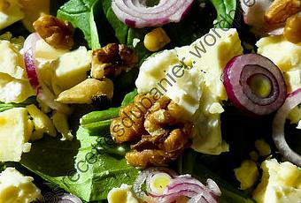 Salade de mâche aux pommes, noix et fromages / Apple, Walnut and Cheese Lamb Lettuce Salad :