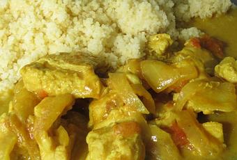 Ajouter le curry, le lait de coco et la tomate coupées en dès.
