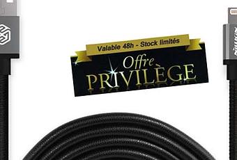 Le câble de recharge et de synchronisation Lightning Nillkin Gentry est disponible pour 16,95 € au lieu de 39,95 €. Attention, cette offre est limitée dans le temps car uniquement valable pour tout achat effectué entre le vendredi 11 mars à 12h et jusqu’au lundi 14 mars à 22h.